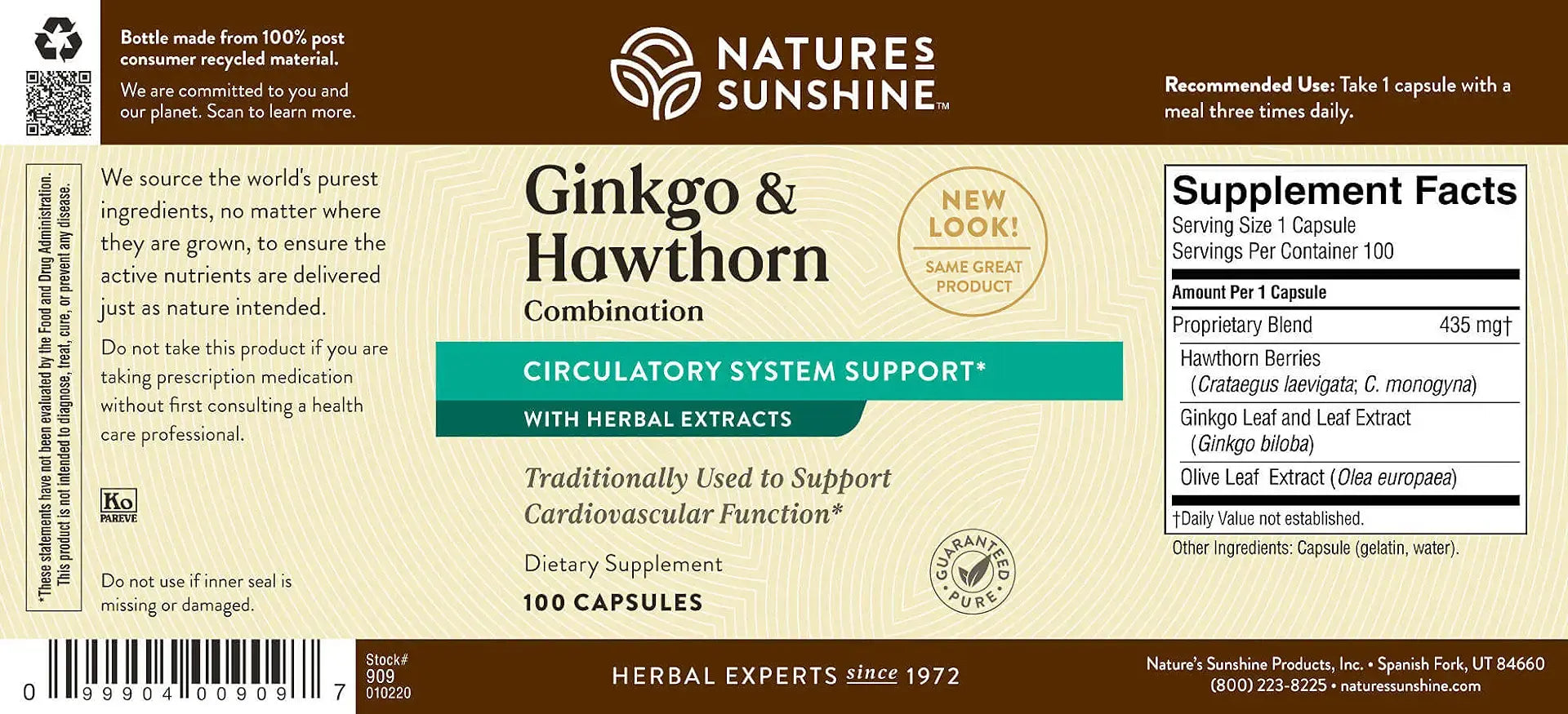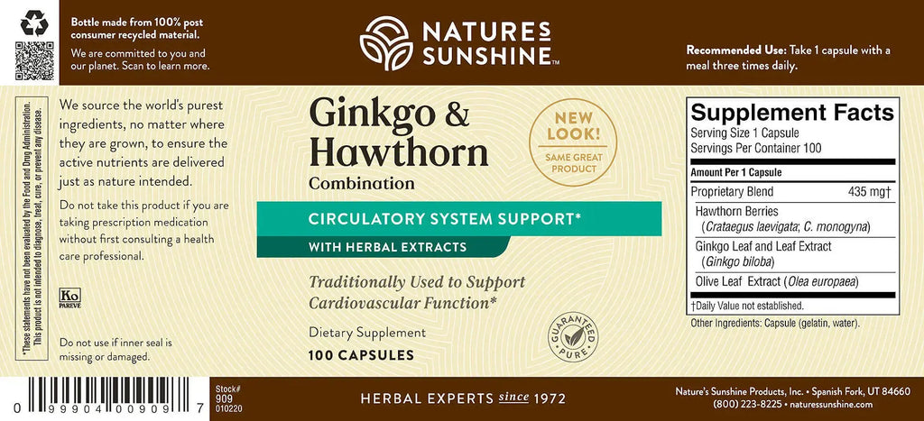 New. Nature's Sunshine Ginkgo and Hawthorn Combination, 100 Capsules | Herbal Combination Supports Increased Circulation Body-Wide and Helps with Oxygen Utilization in The Heart