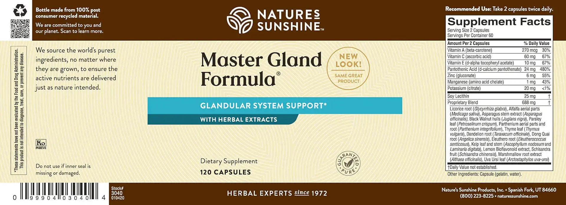 Nature's Sunshine Master Gland® (120 caps) can help support natural gladular health.